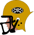North Canton Bootleggers - Gold comes from the color of good quality corn-made white lightning. Black is from the top soil of the Appalachian Mountains running through Bristol, TN. The skull and cross bones are from the near by ETSU Buccaneers and the X's signify the moonshine's potency.