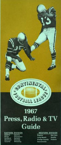 BDFL to honor the Continental Football League in 2017 TITLETOWN - As part of the 2017 BDFL season, the league will honor the Continental Football League (CoFL) as part of their annual Throwback Week celebration. During Week #6 action, each BDFL team will represent a former CoFL team. The CoFL operated in North America from 1965 through 1969. It was established following the collapse of the original United Football League, and hoped to become a major force in professional football outside of the NFL and AFL. Though the CoFL never rose past AAA football, many pro football legends including Doak Walker (Akron Vulcans), Bill Walsh (San Jose Apaches), Kenny "Snake" Stabler (Spokane Shockers), Sam Wyche (Wheeling Ironmen), Lee Grosscup (Hartford Charter Oaks), Johnnie Walton (Indianapolis Capitols), Garo Yepremian (Michigan Arrows), Coy Bacon (Charleston Rockets) and Otis Sistrunk (Norfork Neptunes) all logged time in the league as a player, or coach. Others associated with the league in a management role included Jackie Robinson (Brooklyn Dodgers), Red McCombs (Mexico Golden Aztecs) and A.B. "Happy" Chandler (Commissioner). The BDFL will honor the 1967 CoFL season since this will be it's 50th anniversary. On a personal note, when Iron Hand was seven years old in 1968, I remember my Dad taking us to see the Alabama Hawks with former Crimson Tider Paul Crane, on loan from the New York Jets, play a game somewhere in Birmingham. See the BDFL team assignments for this year's Throwback Week 2017 honoring the historic Continental Football League.
